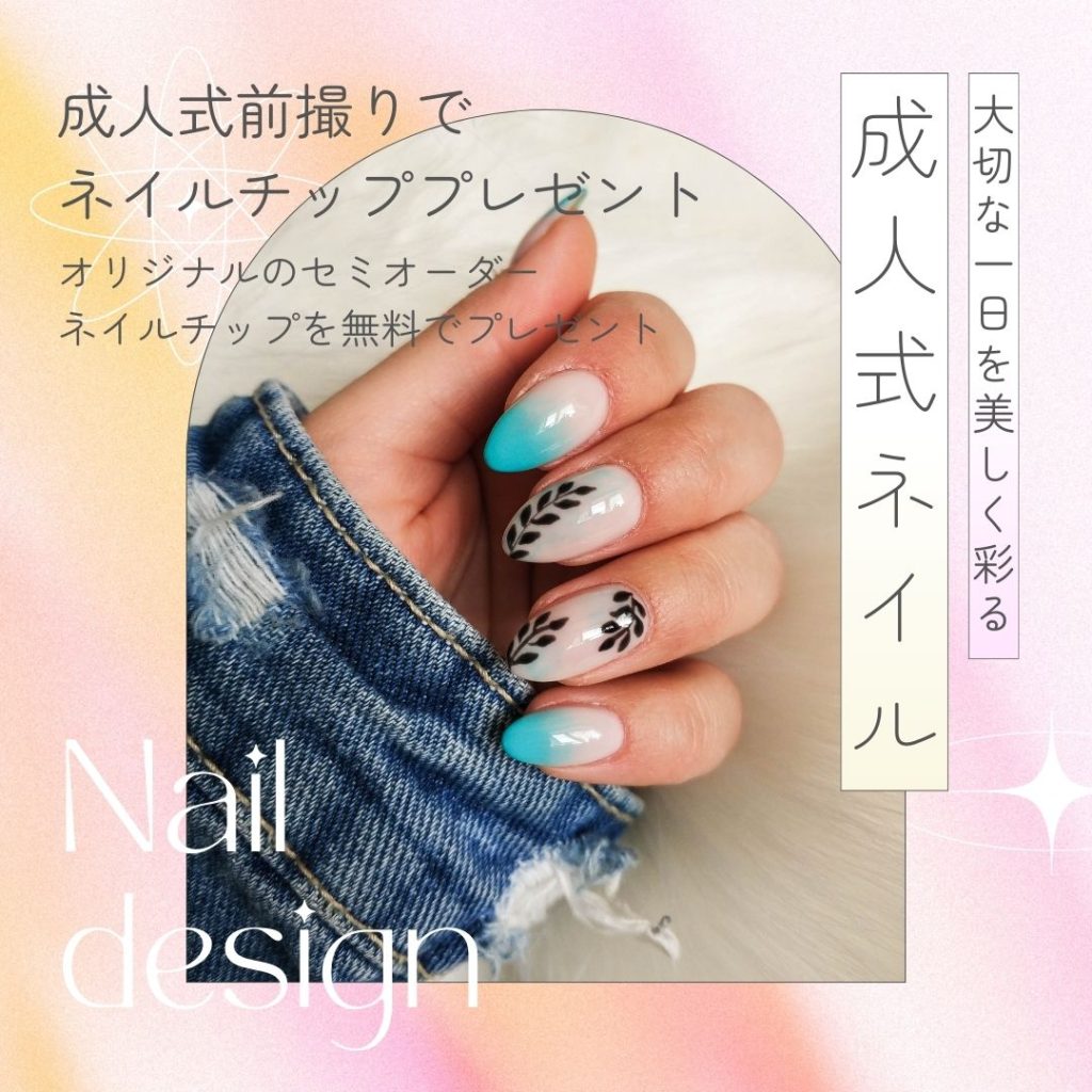 成人式の前撮り撮影をされる方限定で、プロが一つひとつ丁寧に仕上げたネイルチップをご用意。