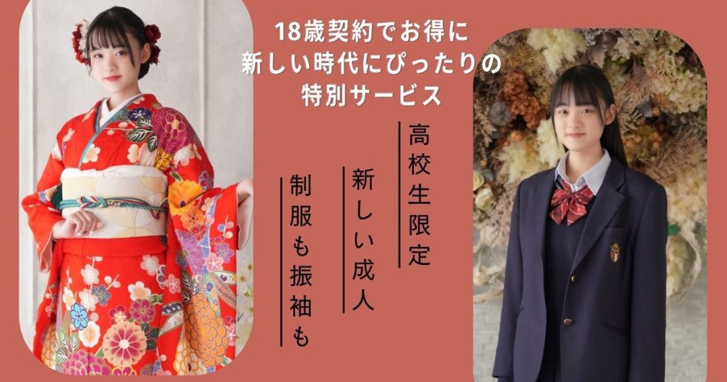 制服姿と振袖姿、両方の撮影を無料でプレゼント!
