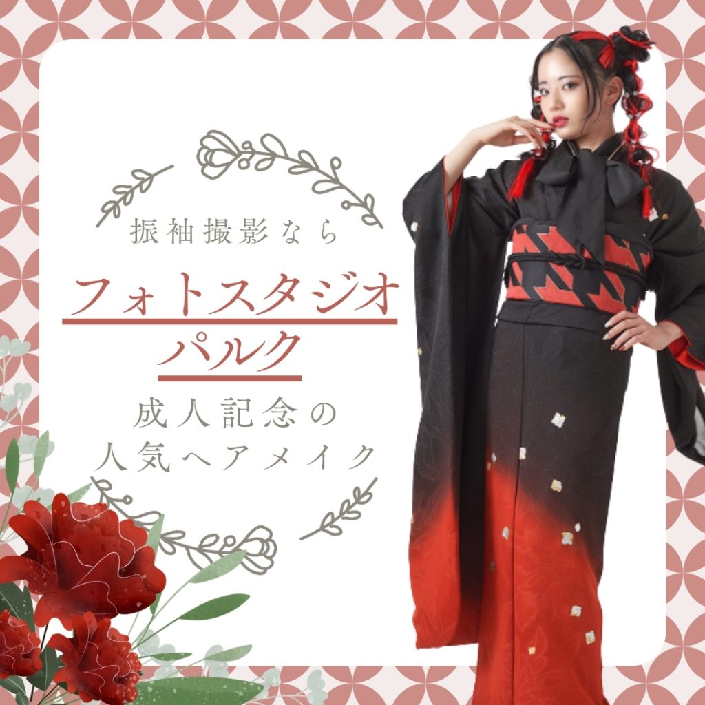 フォトスタジオパルクでは、トレンドを押さえた“今風の振袖ヘアメイク”と、あなたらしさを引き出す撮影で、特別な成人記念を美しく残せます。