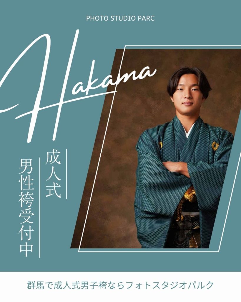 群馬県高崎市のフォトスタジオパルクでは、男子の成人式を彩る袴レンタル&撮影をご提供しています。前撮り撮影はもちろん、成人式当日の支度・着付けまでトータルサポート。まだご予約が間に合う枠もございますので、ぜひお早めにお問い合わせください。