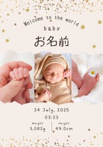 ニューボーンフォト撮影をしていただいた方限定で、写真入りオリジナル命名フォトをプレゼントしています。