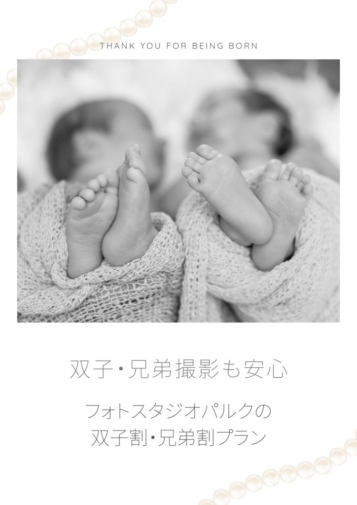 ニューボーンフォト・お宮参りなどのベビー撮影では、双子・兄弟2名様以上で50%OFF。