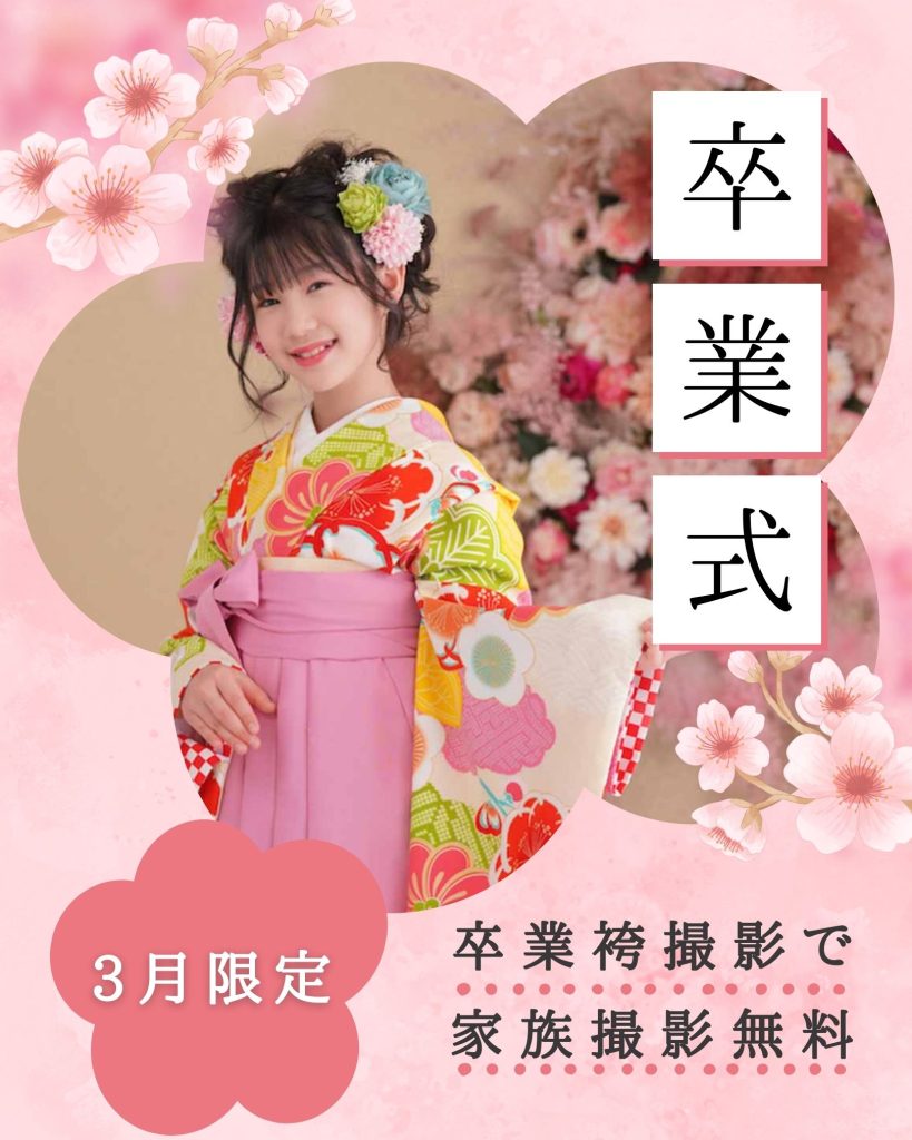 3月限定|卒業袴撮影で家族撮影無料サービス|群馬県高崎市フォトスタジオパルク