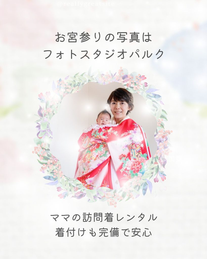【高崎市】お宮参りの写真はフォトスタジオパルク|ママの訪問着レンタル・着付けも完備で安心